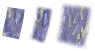 Enable Edge Noise—when checked, the edges of strokes made with the current brush are feathered with Perlin-like noise. In the illustration below, edge noise is disabled on the left and center strokes and enabled on the stroke at right. Because edge noise obscures transitions between strokes when one stroke is laid atop another, it is very useful when layering strokes to create various effects. When noise is enabled, it is generated in the blending pixels, so the intensity of its effects are increased or decreased with the number of blending pixels.